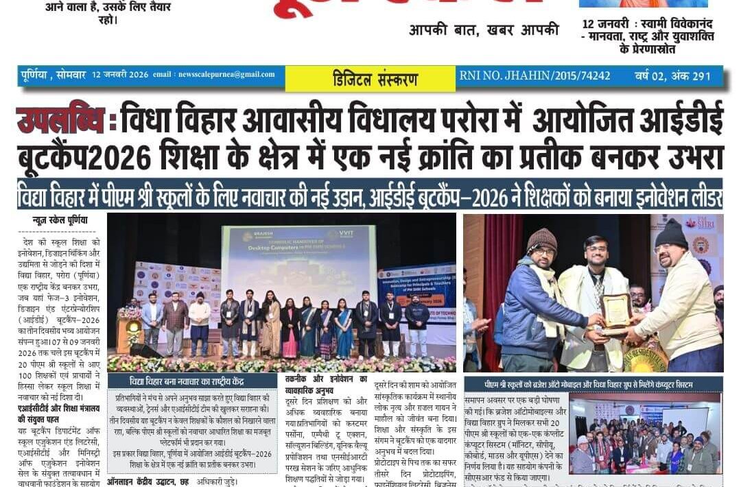 आज दिनांक 28 /12 /2023 को विद्या विहार इन्स्टीच्यूट आफ टेक्नोलॉजी मरंगा पूर्णिया में Viksit Bharat @ 2047- Voice of Youth कार्यक्रम का आयोजन स्टूडेंट एक्टिभिटी सेल के हेड प्रो0 प्रमोद कुमार झा की अध्यक्षता में संपन्न हुई। इस आयोजन में मुख्यत: छात्र- छात्राओं को […]